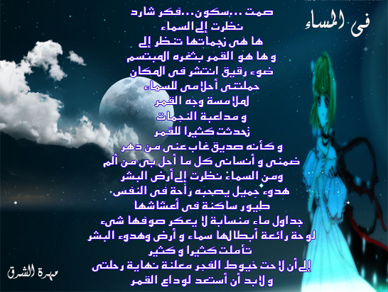 الرئيسية › منتديات › مجلس الثقافة الأدبية والشعر › عندما يأتي المساء فارد جناحيه .. This topic has 21 رد, 8 مشاركون, and was last updated قبل 15 سنة، 10 أشهر by خالد التميمي. مشاهدة 6 مشاركات - 16 إلى 21 (من مجموع 21) → 1 2 الكاتب المشاركات 12 نوفمبر، 2009 الساعة 8:19 ص #1359987 مهرة الشرقمشارك إنشاء قائمة أسم القائمة عام إنشاء