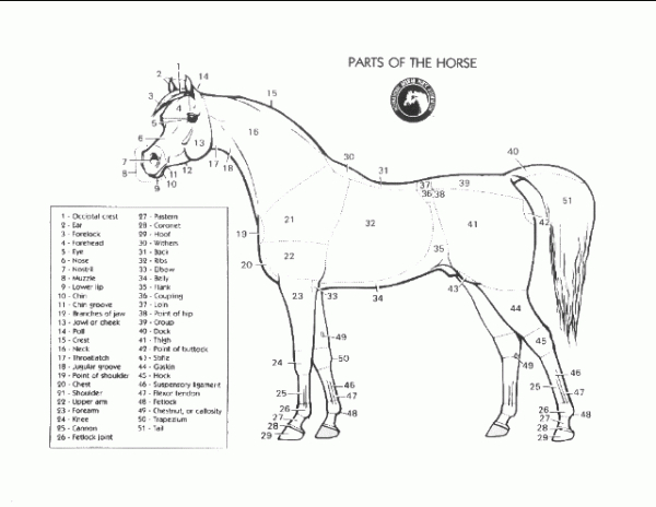 أخوتي أعضاء المنتدي الكرام هذه الصورة عبارة عن صورة توضيحية لاجزاء الحصان العربي الاصيل: